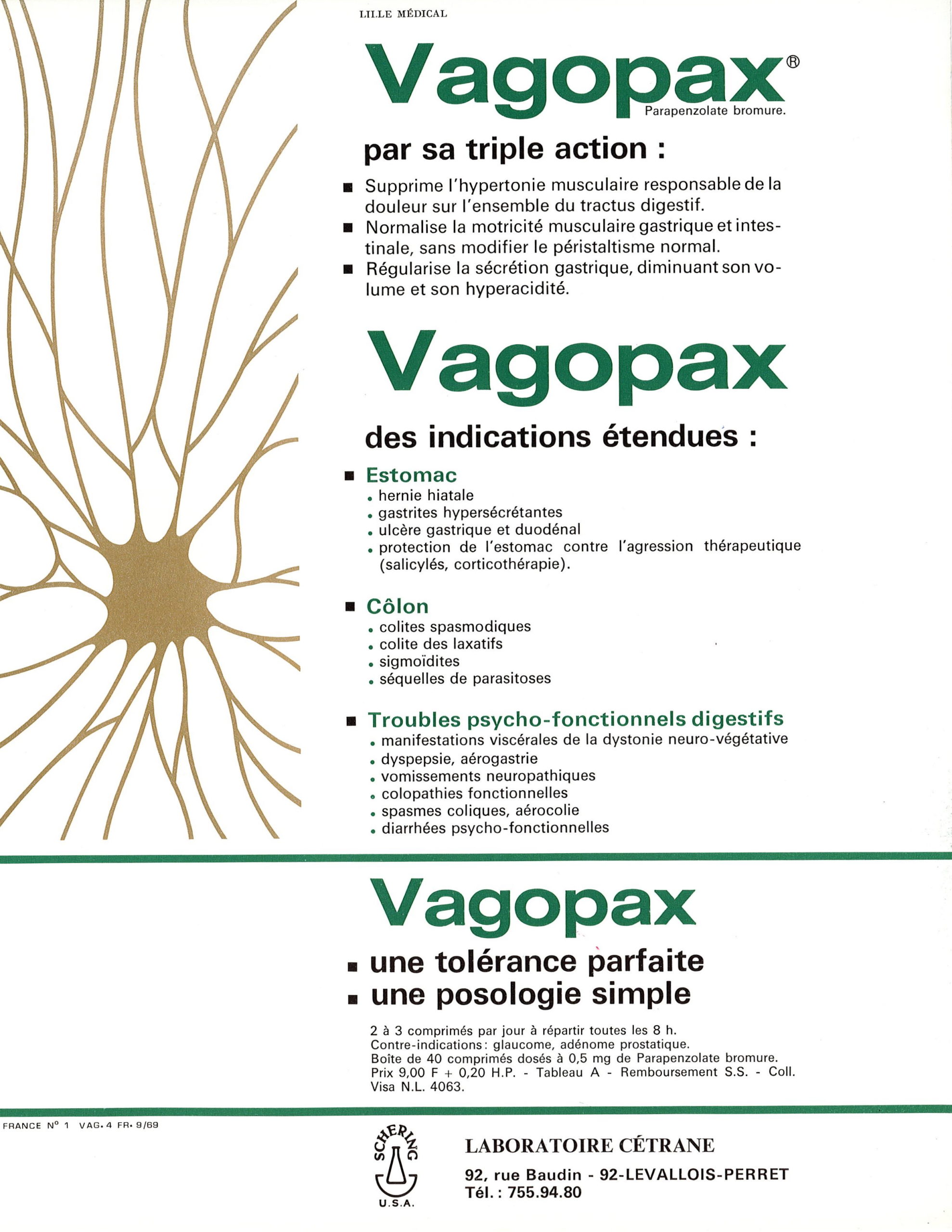 Parapenzolate bromide, the active principle of Vagopax ® (also known as S.C.H. 3444) is a synthetic drug acting as an anticholinergic agent, used in the treatment of duodenal and gastric peptic ulcers, gastritis, colitis and other digestive diseases. The compound was useful to the relief of visceral spasms, considered as a safe and well-tolerated antispasmodic agent with a prolonged duration of action. This orally-active drug was well-known for its potent antisecretory and antimotility properties, inhibiting both basal and histamine-stimulated acid outputs. It was also considered for the control of vagal hypertonia (attributed to an excessive activity of the parasympathetic nervous system).